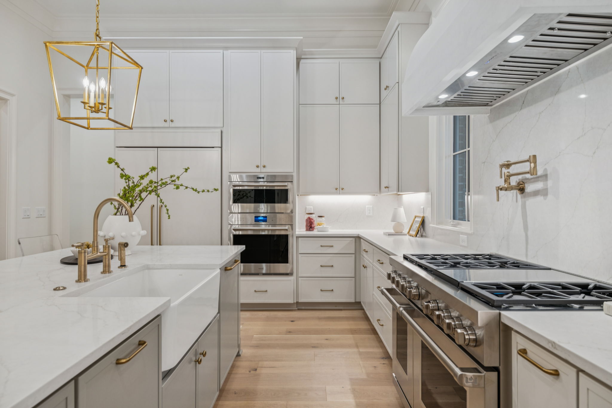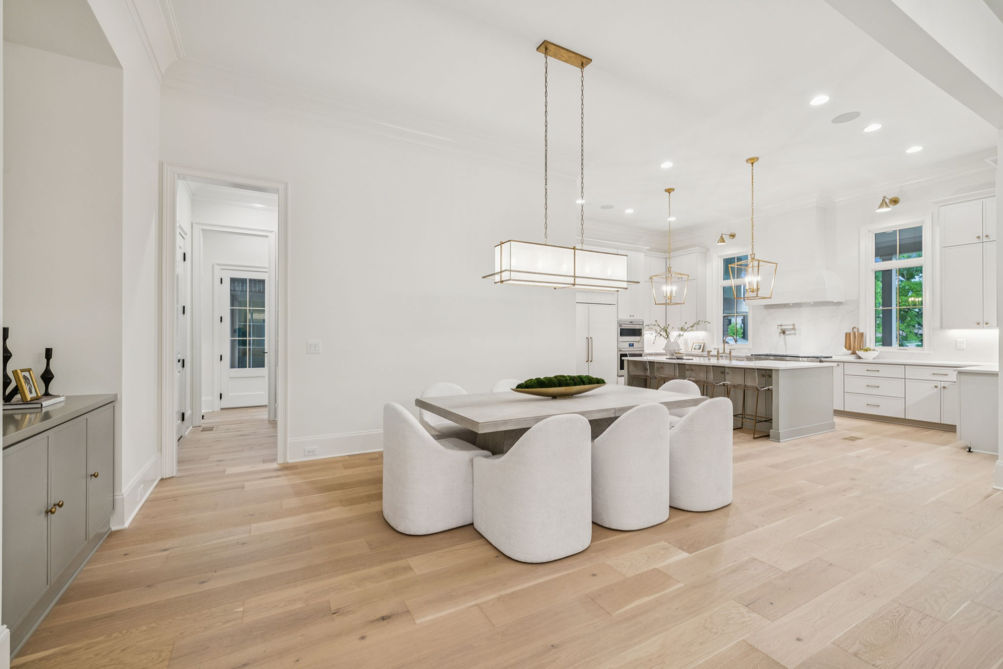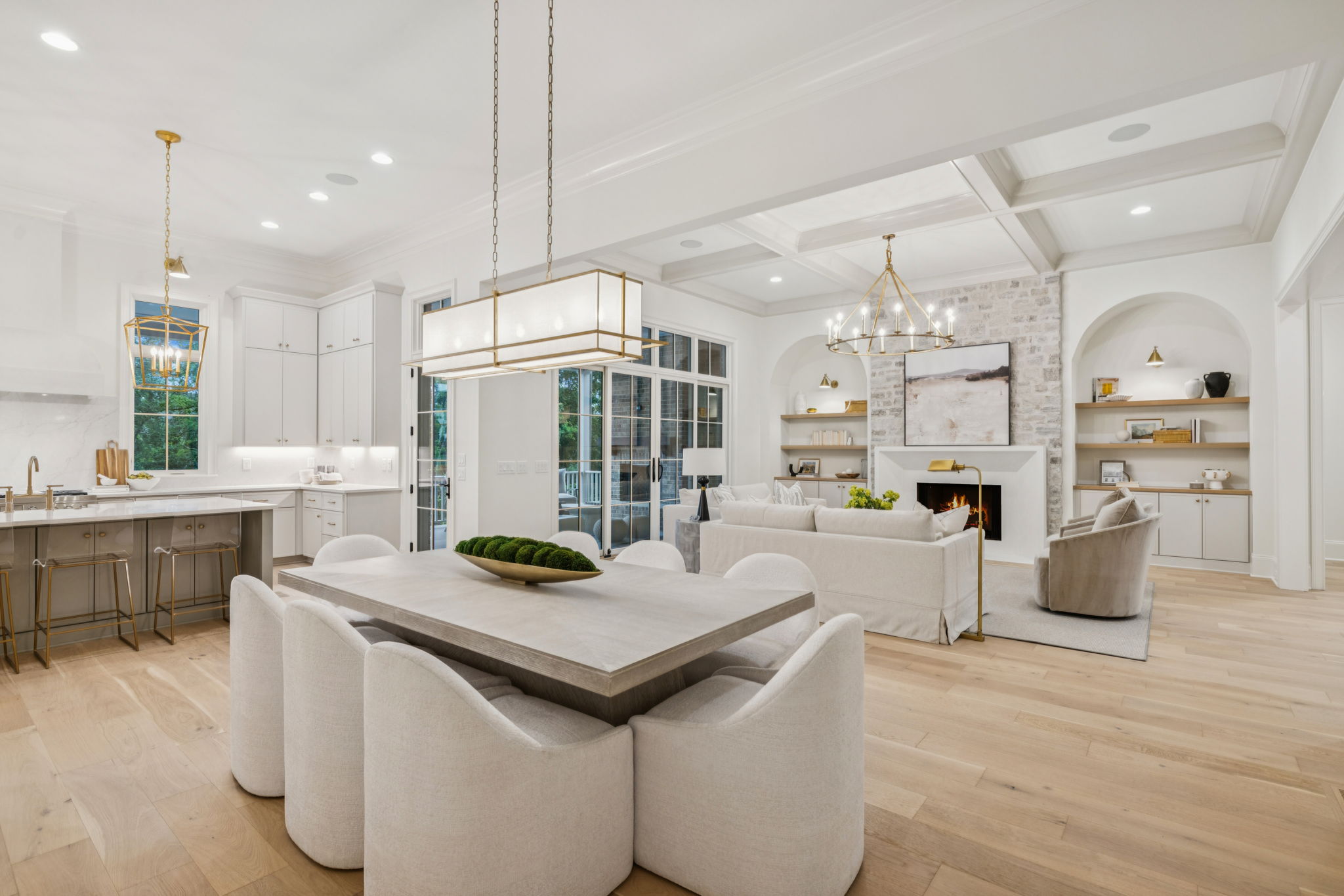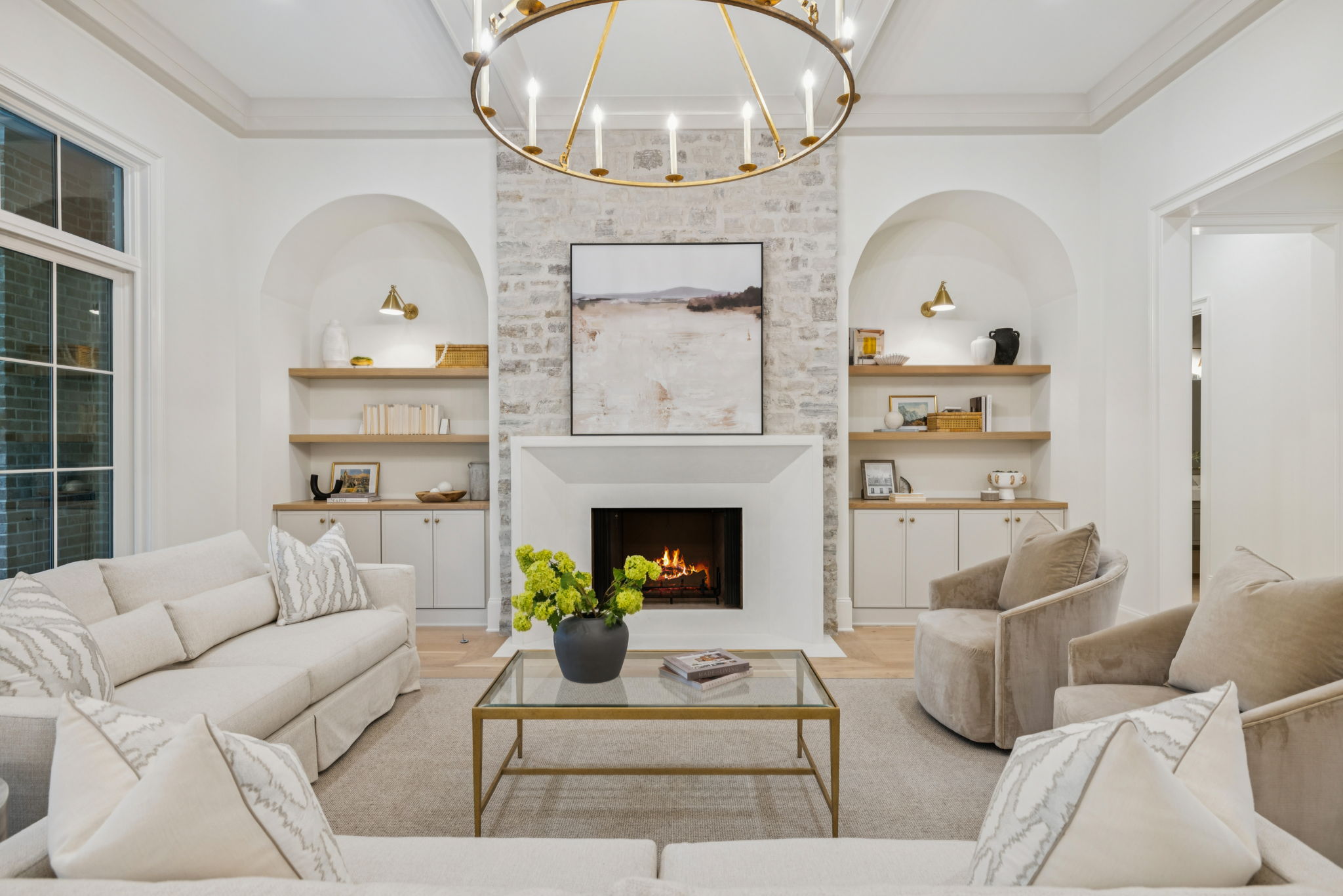 This stately 8,924 sq. ft. home is presented by Ford Classic Homes, featuring a magnificent primary suite on the main level with vaulted ceiling and stained beams, free-standing tub, and a large walk-in closet with a full-length mirror plus built-in dressers on either side of the window bench. A wonderful Alexandra floor plan with a Guest Suite plus a Study with crossing beam ceiling detail on the main level. Kitchen with flush island and Dining Room are perfect for entertaining. Great Room with coffered ceiling detail and built-in custom cabinetry to either side of the wood-burning fireplace leads out to two covered deck areas. One deck has a wood-burning fireplace, and the other has a built-in grill. The upper level has 3 ensuite bedrooms, Game Room, Flex Room, Finished Storage Room, and Bonus Room with a wet bar opening to an expansive Sun Deck. The basement features the sixth bedroom, two full bathrooms, a Kitchenette, Billiard Room, Media Room, Exercise Room with a wall treatment and drop zone, two covered patio areas, finished storage, and a future wine cellar. 3-car garage! Elevator services all three levels, so it makes utilizing all of the floors a breeze. This home backs up to trees and a creek! This home is just a short distance from the Bridge Bar, Tennis/Pickle Ball courts and swimming pool in The Gathering Place.