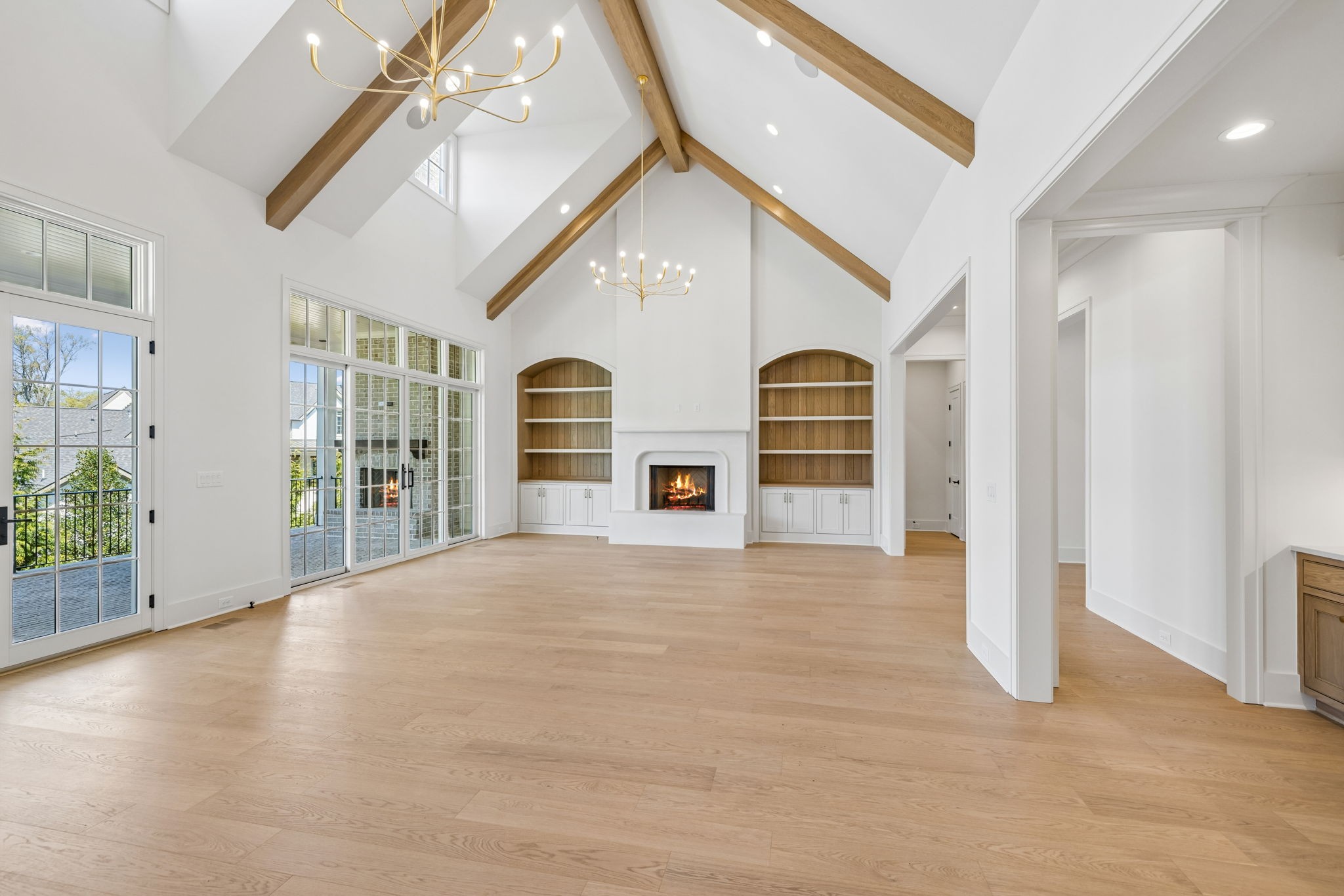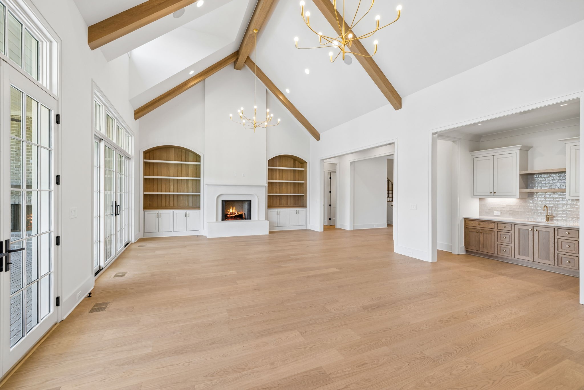 This impressive 5,292 sq. ft. home is presented by Ford Classic Homes and features a luxurious two-story entry foyer off of the front covered porch. Primary suite on the main level with a 16′ vaulted ceiling with a beam detail, a free-standing tub, a curbless walk-in shower, double vanities, and a large walk-in closet with built-in dressers, shelving, and a window bench seat. Guest Suite, plus a Study featuring decorative glass doors and a stained coffered ceiling beam detail on the main level. Kitchen showcases a flush island with a prep sink, a walk-in pantry, a backsplash, and quartz countertops. Dining Room and Great Room boast a 21′ vaulted ceiling with a stained beam detail. Dining Room features a wet bar. Great Room, with built-in custom cabinetry to either side of the 42″ wood-burning fireplace, leads to the outdoor living area. The rear covered porch has a 42″ wood-burning fireplace, and it connects to the grilling porch. Utility Center and Mud Room with drop zone convenient to the garage entry. The upper level has 3 ensuite bedrooms (one with a window bench seat in the walk-in closet), a Storage Room with rough-ins for a future washer and dryer, a Game Room with a wet bar, a Bonus Room, and a Study Niche. 3-car garage! This home is just a short distance from the Bridge Bar, Tennis/Pickle Ball courts and swimming pool in The Gathering Place.
