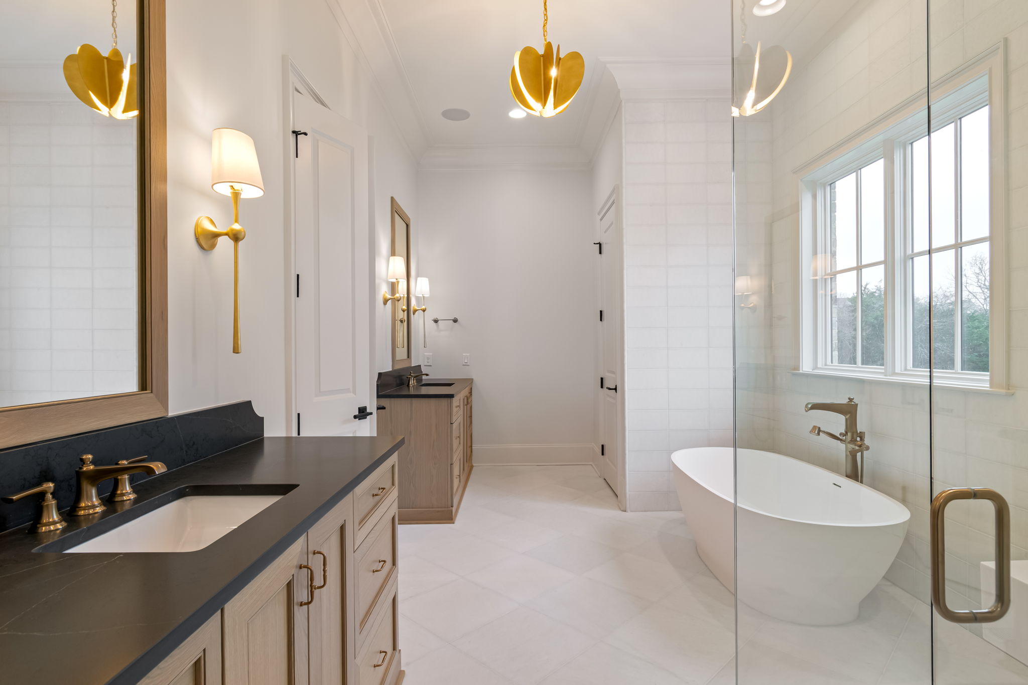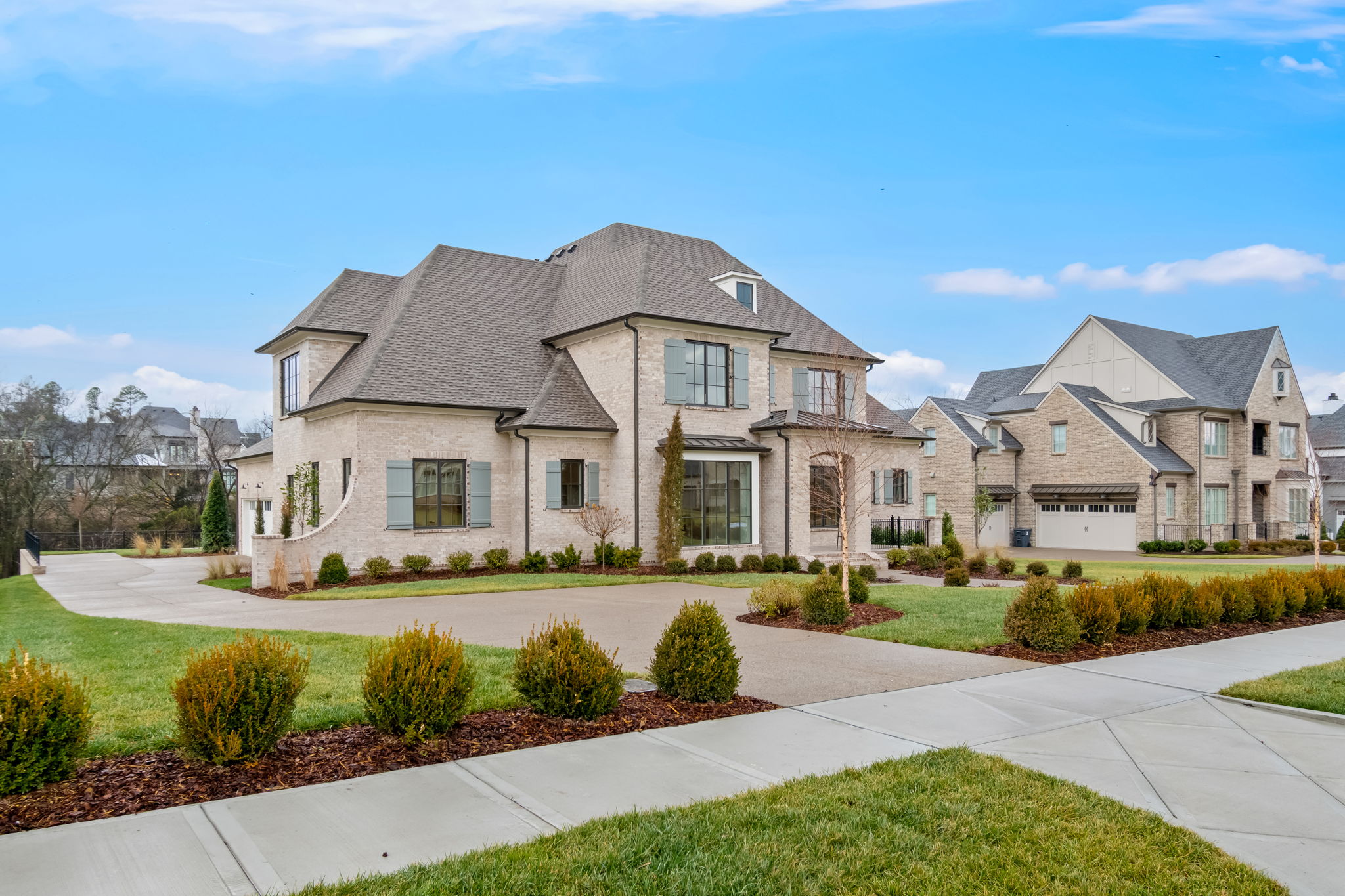 5,529 sq. ft. home with 5 bedrooms, 5 full baths, 1 half bath, and a 3-car garage! Ford Classic Homes’ Homesite #102 “Wentworth 120” plan features a dramatic two-story entry foyer off of the terrace and covered front porch. Spacious gourmet Kitchen with Wolf appliances including three ovens, cabinetry to the ceiling, an arcustone hood, a hidden pantry, quartz countertops, slab backsplash, flush island, and an adjoining Breakfast Nook. Great Room featuring a coffered ceiling with stained beam detail and shiplap, plus a 42” wood-burning fireplace and built-in custom cabinetry to either side. Main Level formal Dining Room with a stained crossing beam detail and triple windows. Butler’s Pantry with an undercounter wine cooler and Study showcasing built-in bookcases. Main Level Primary Bedroom featuring a vaulted ceiling with stained beam detail. Primary Spa featuring a curbless walk-in shower, free-standing tub, double vanities, stained white oak cabinetry, a backsplash, and a large walk-in closet with two built-in dressers, two window bench seats, and a wall mirror. Main Level Guest Suite with en-suite bath. Oversized Utility Center with drop zone convenient to the garage entry. Spacious Bonus Room featuring a full wet bar and stained perimeter beam detail connecting to an expansive Sun Deck on the upper level. Upper-Level Exercise Room, Finished Storage/Flex Room including rough-ins for a washer and dryer, and three secondary bedrooms. Covered outdoor living featuring a 42” wood-burning fireplace and grilling porch!