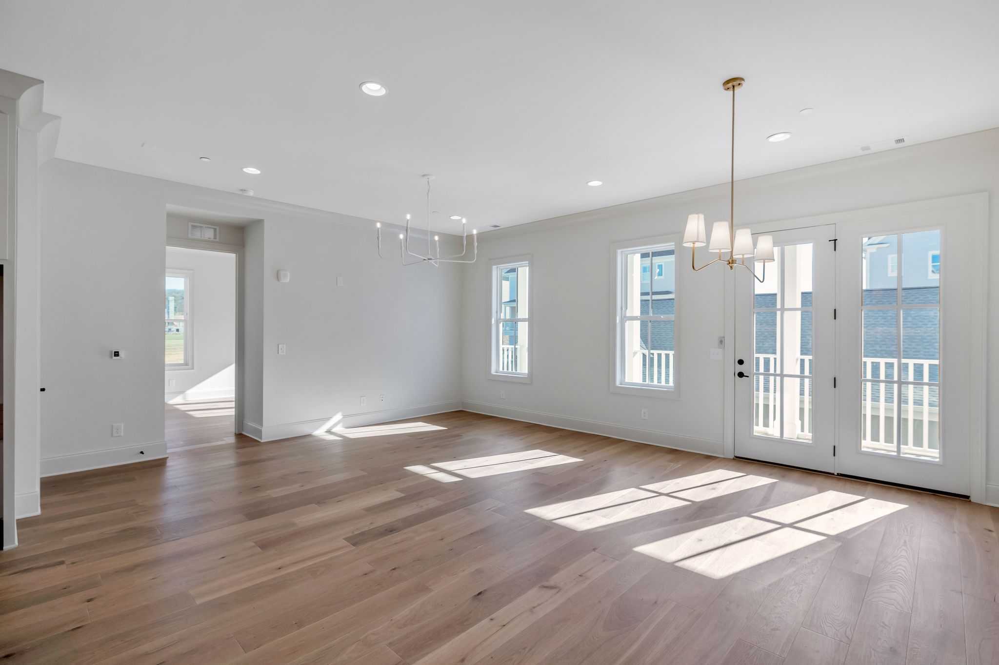 This Whitman Condo is presented by Ford Classic Homes. The Kitchen features an island, a tile backsplash, Thermador and Sharp appliances, a stained white oak accent band on the hood, and quartz countertops. Kitchen overlooks the Dining Room and Living Room. Primary Suite features a wall detail above the double vanities, plus a walk-in shower, quartz countertops, and a large walk-in closet. Guest Bedroom with an ensuite bathroom includes a decorative mirror and floor tile laid in a basketweave pattern. Pantry and Laundry Room convenient to the Kitchen. Drop Zone with a wall detail and a stained white oak bench below. Sizable balcony off of the Dining Room. Powder Room with a stained white oak floating vanity, a tiled vanity wall, and a decorative mirror. Experience world-class amenities, from tennis to pickleball to Friday-night concerts and songwriter nights to cocktails and dinner in the Town Center. Westhaven is ready to welcome you home!